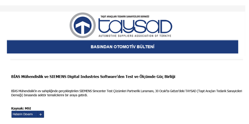 BİAS Mühendislik’in ev sahipliğinde gerçekleştirilen SIEMENS Simcenter Test Çözümleri Partnerlik Lansmanı, basın ve dijital yayınlarda yer bularak kamuoyuna duyurulmuştur.